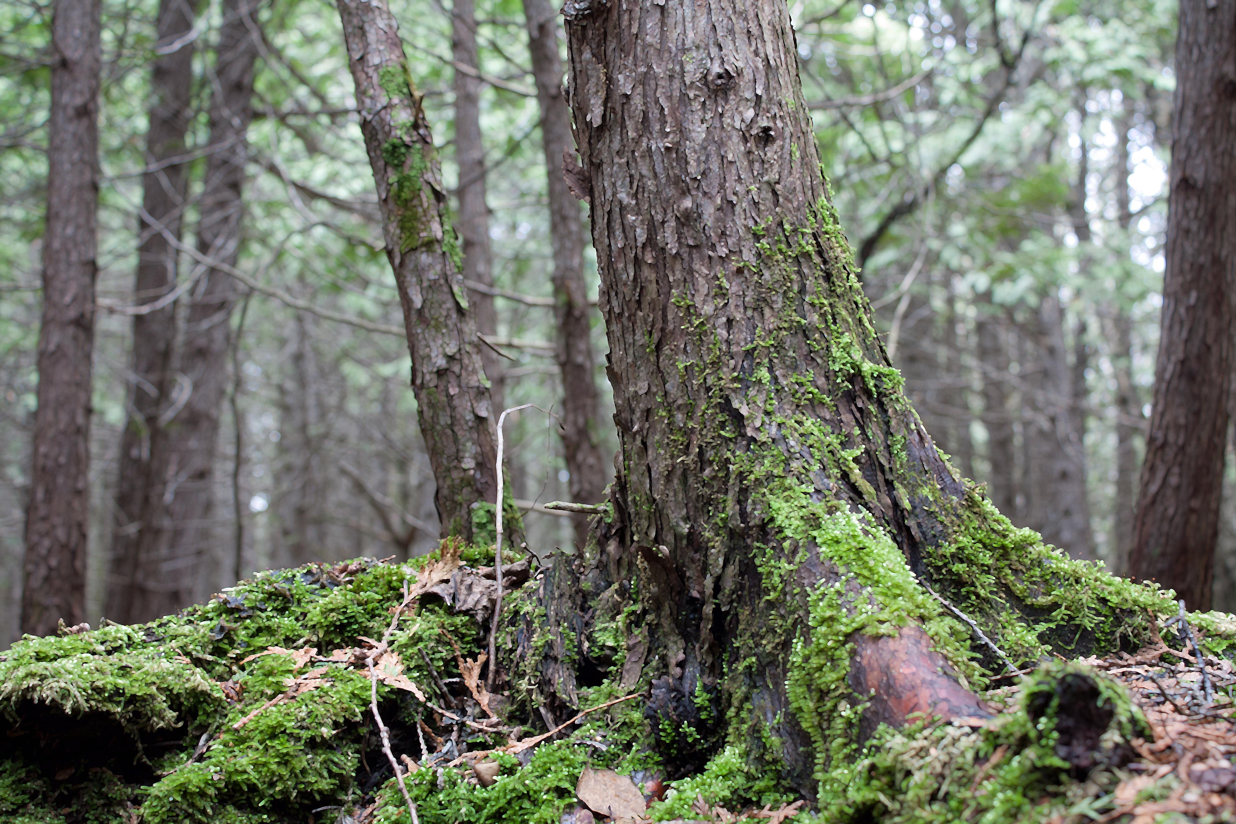 Mossy cedar tree in Trent Nature Sanctuary, ON (image and rendition by Nina Munteanu)