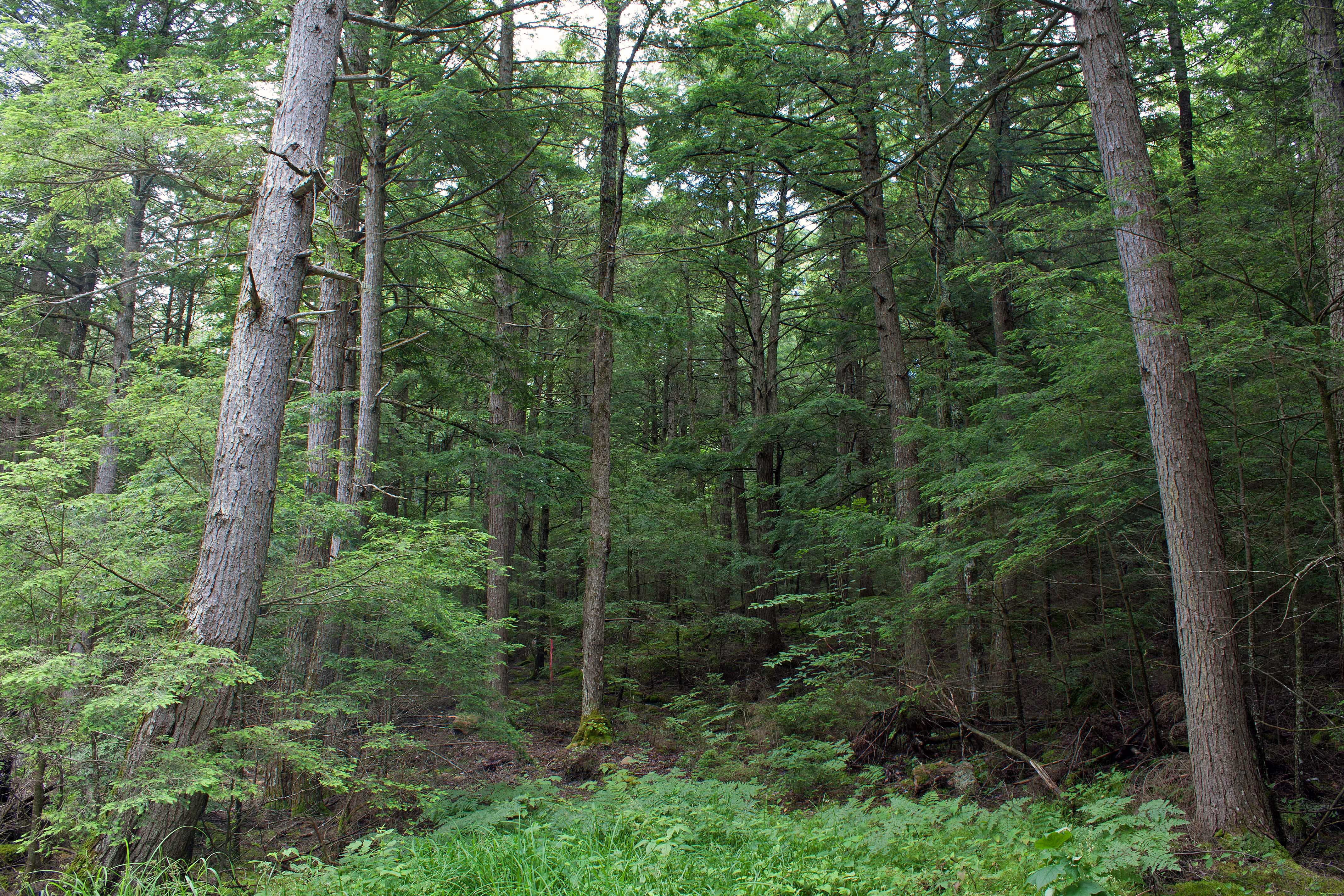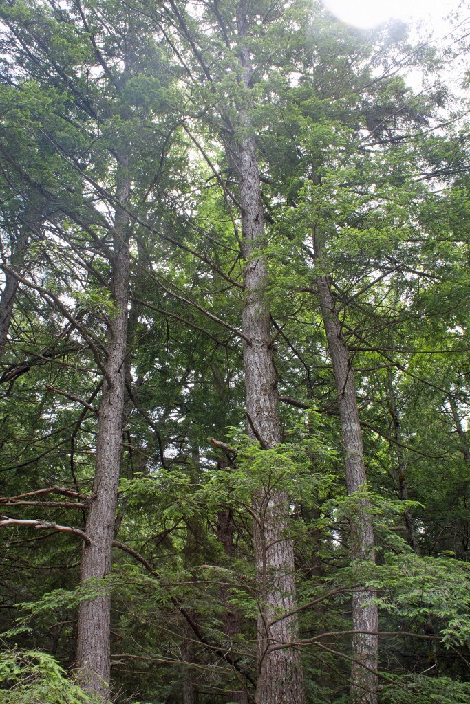 Giant white pines rise high above me like columns of a sacred cathedral. Their deep green canopies sway and creak in the breeze as they strain toward the heavens. Below, at my feet, a profusion of ferns and forest plants lie in the dappled light of the understory. My boots crunch and squelch on the spongy ground.