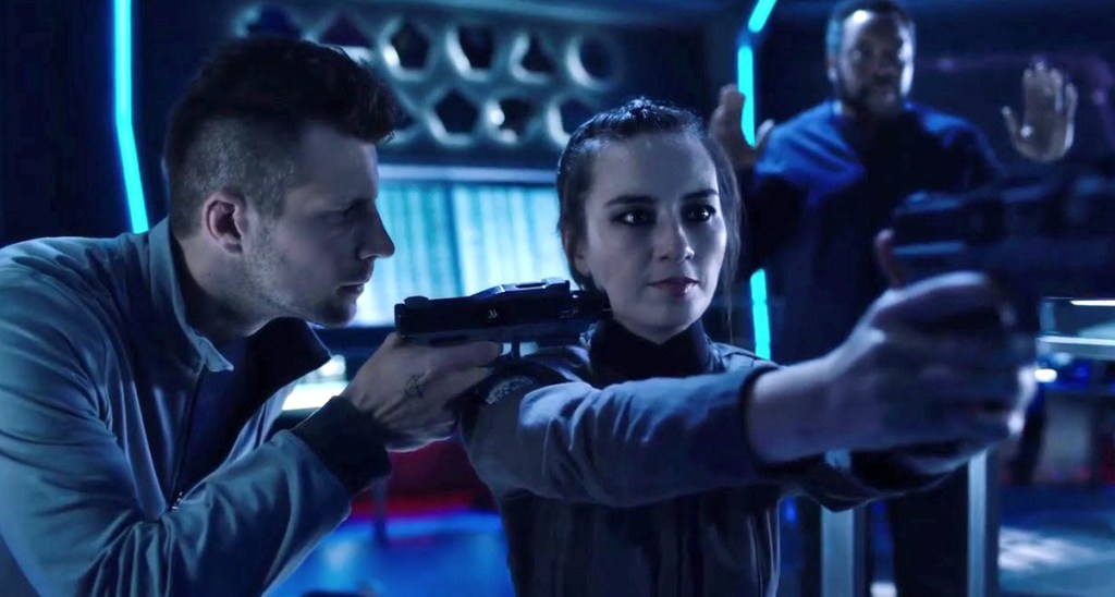 First, Miller’s boss, Shaddid (Lola Glaudini) tosses him a missing person case: find Julie Mao (Florence Faivre), wayward daughter of a Luna-based shipping magnate (Mao-Kwikowski Mercantile); then Holden and four other crew members of the ice trawler Canterbury barely survive an attack that could spark a war between Earth and Mars. Miller and Holden eventually learn that the missing girl and the ice trawler’s fate are connected to a larger threat.