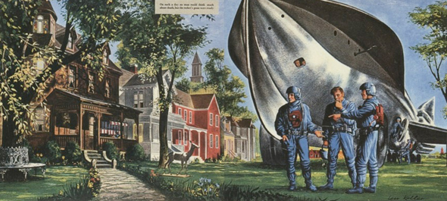 Rockets land on Mars overlooking Bradbury Lane (illustration from Sutori)