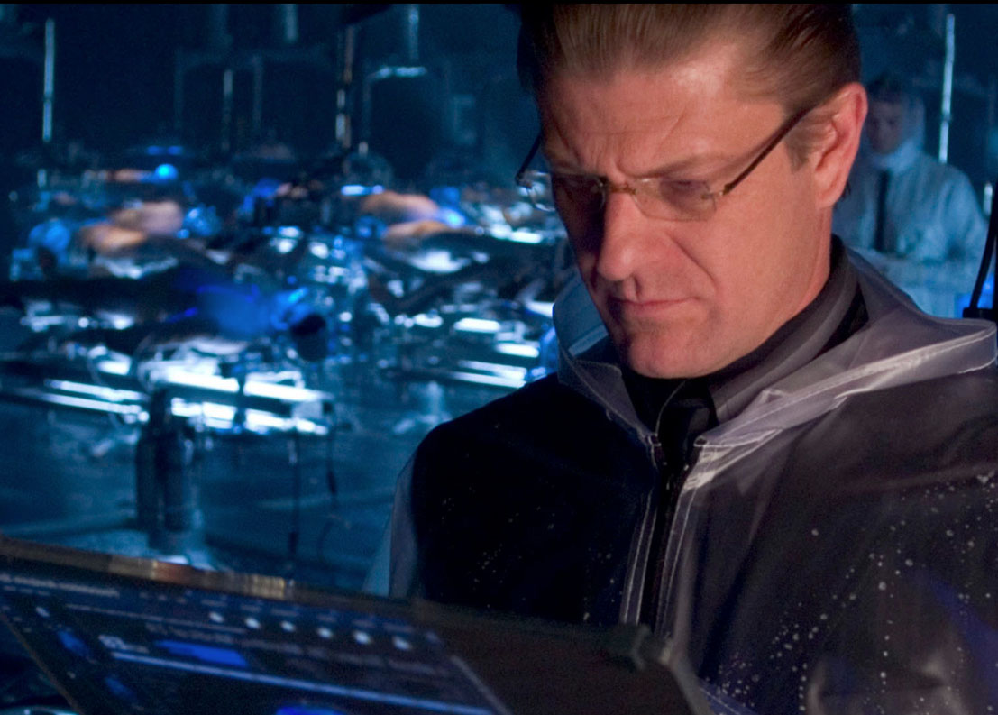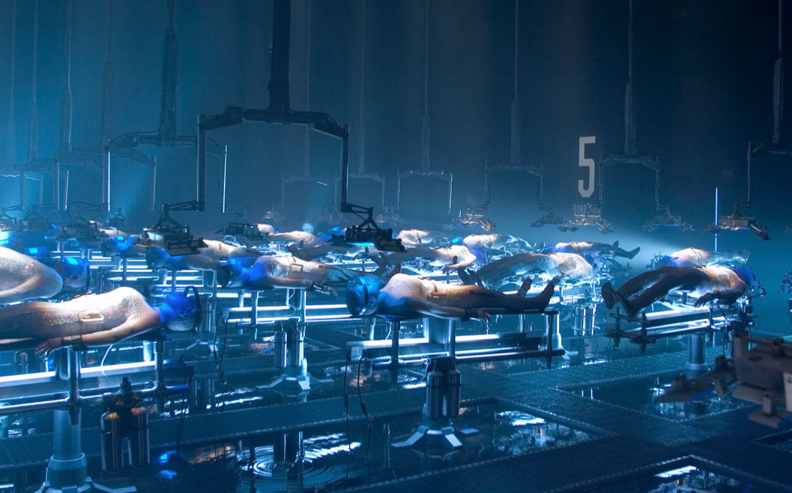 Doctor Merrick oversees the indoctrination of the clones in the giant lab facility