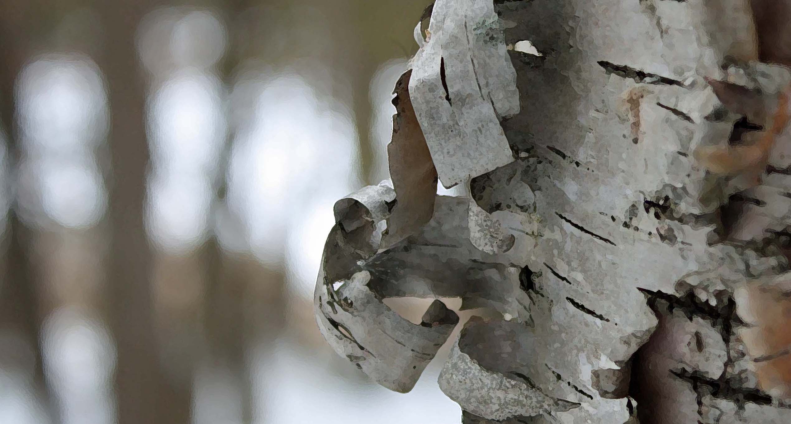 White birch in Trent Nature Sanctuary, ON (photo and dry brush rendition by Nina Munteanu)
