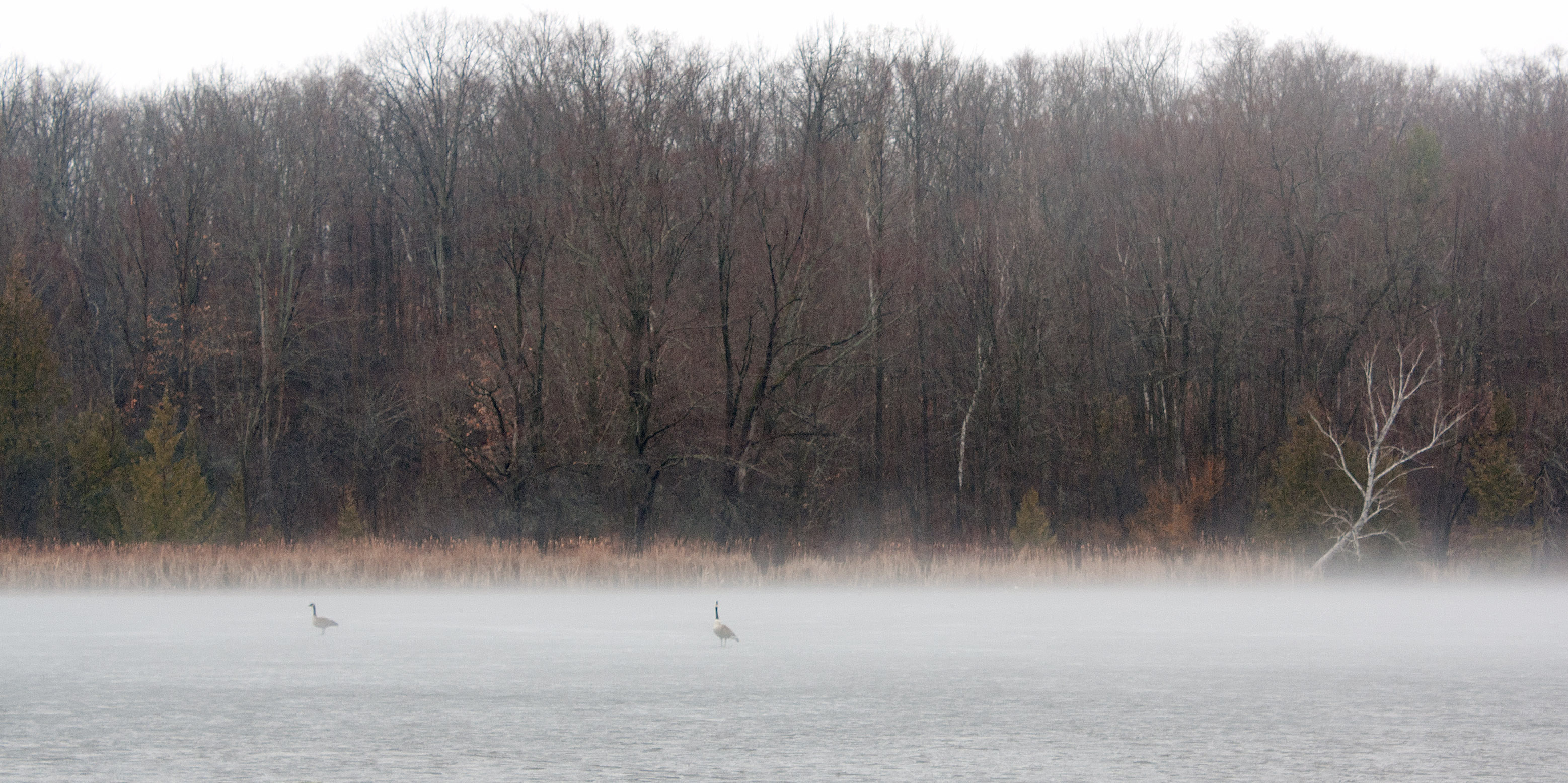 Mist hangs over Trent Canal, Trent Forest Sanctuary, ON (photo by Nina Munteanu)