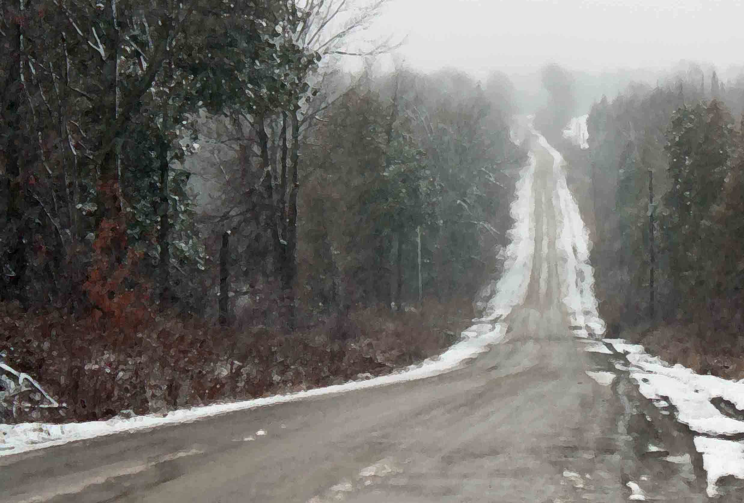 Country road in the Kawarthas, ON (photo and rendition by Nina Munteanu)