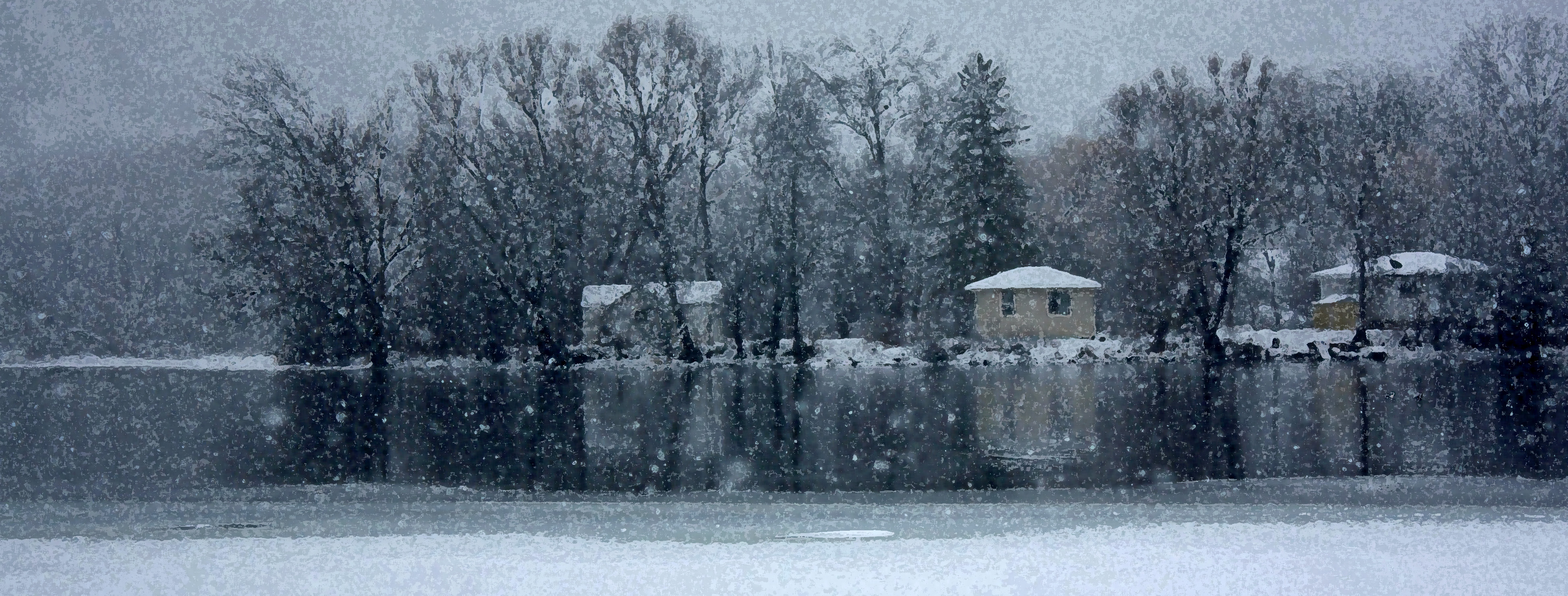 Heavy snow on the river, ON (photo and rendition by Nina Munteanu)