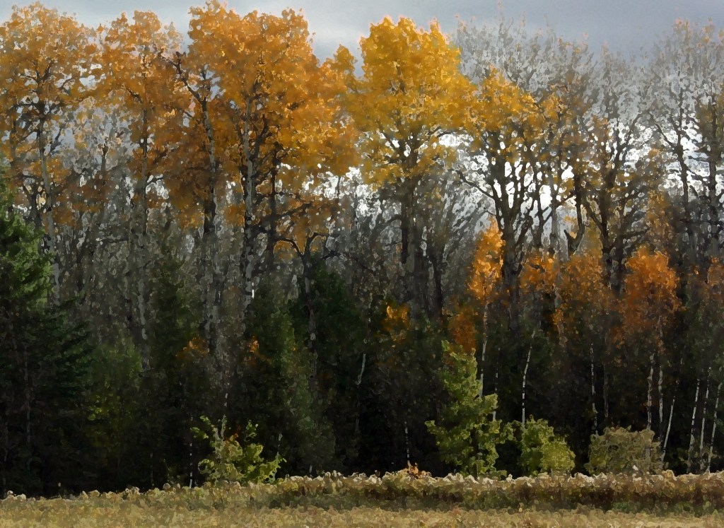 Poplar stand in the Kawarthas, ON (photo and rendition by Nina Munteanu)