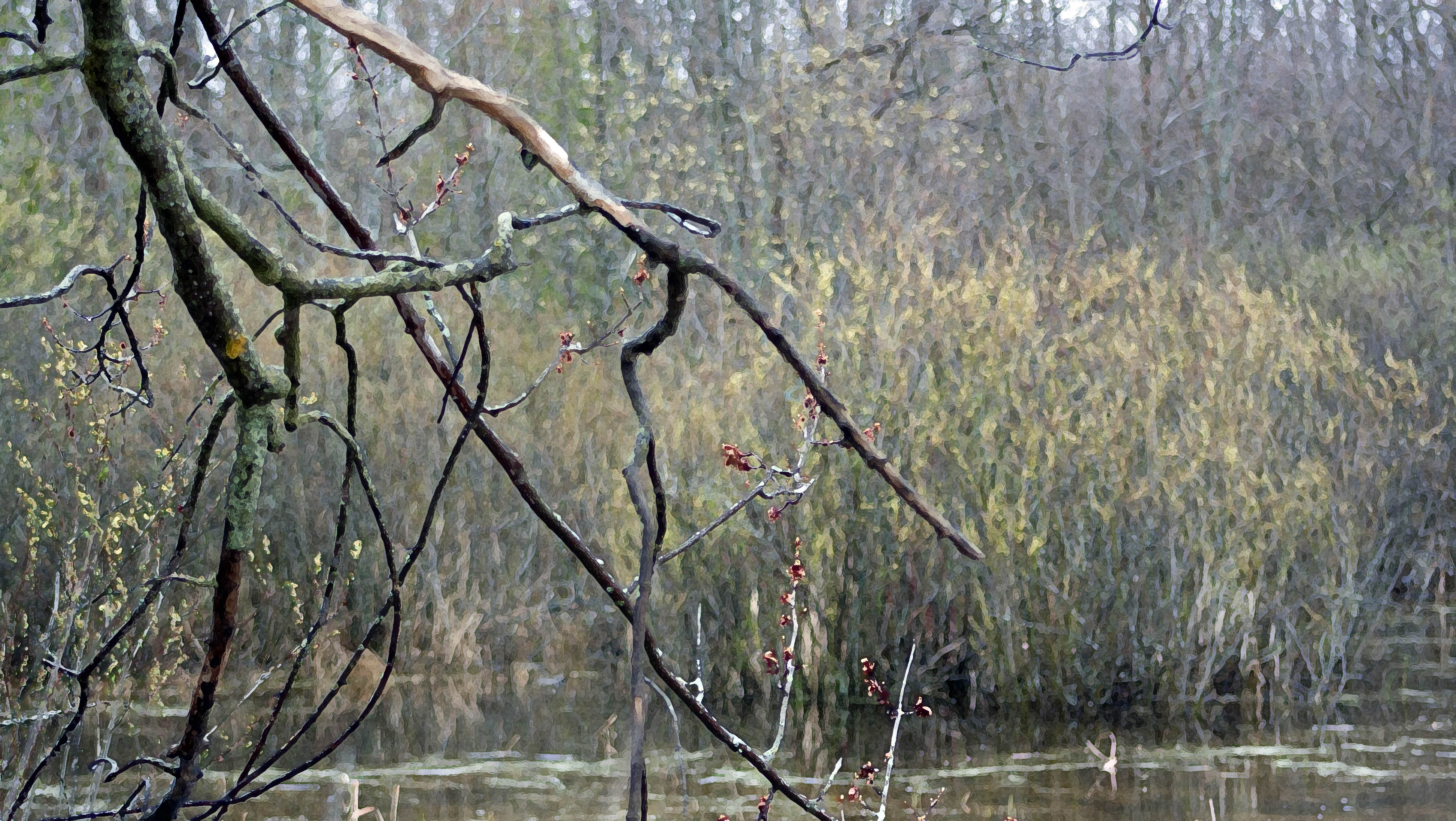 Swamp forest in Kawartha region, ON (photo and rendition by Nina Munteanu)
