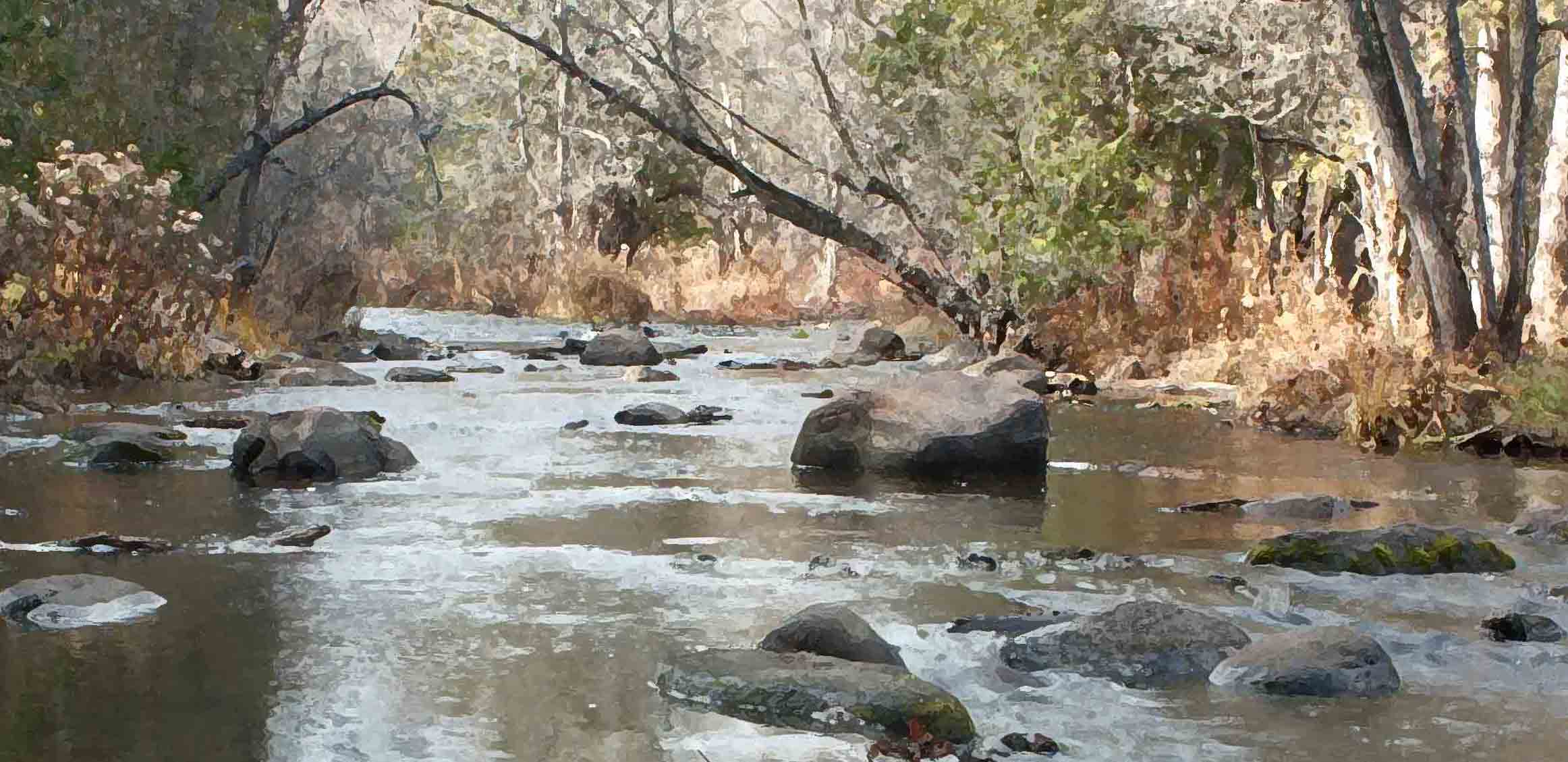 Jackson Creek, ON (photo and dry-brush rendition by Nina Munteanu)
