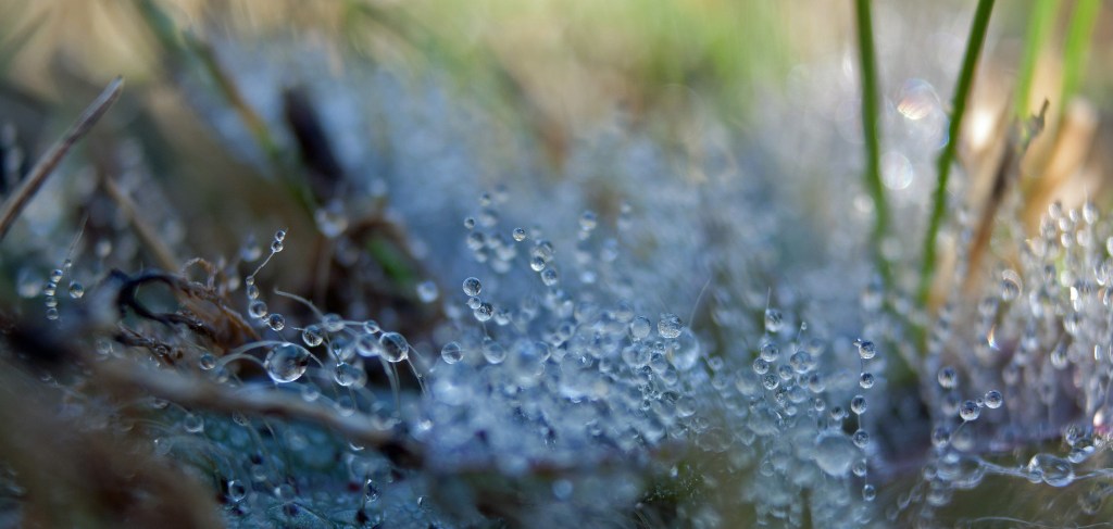 Dew drops on Hawkweed hairs, ON (photo by Nina Munteanu)