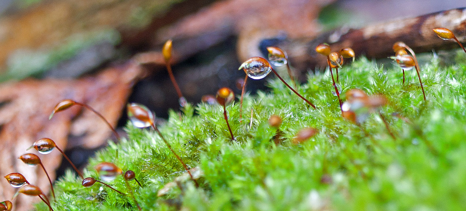 Moss with raindrops on capsules, ON (photo by Nina Munteanu)
