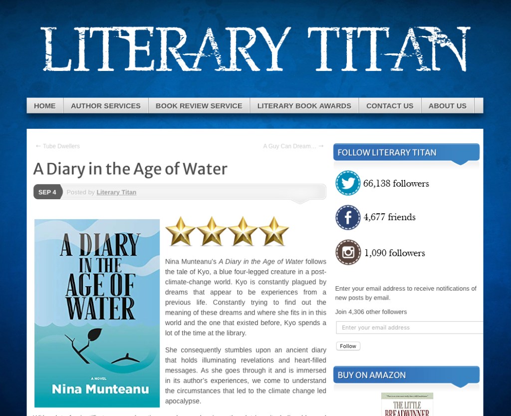 This time last year reviewer Lisa Haselton posted an interview with me on New Year’s Day of 2021 on my latest release “A Diary in the Age of Water.” 2021 saw incredible sales for my clifi eco-novel, along with several appearances on radio shows, podcasts and TV stations. It would seem that water is on everyone’s mind and what better way than a limnologist’s diary to learn more about it.