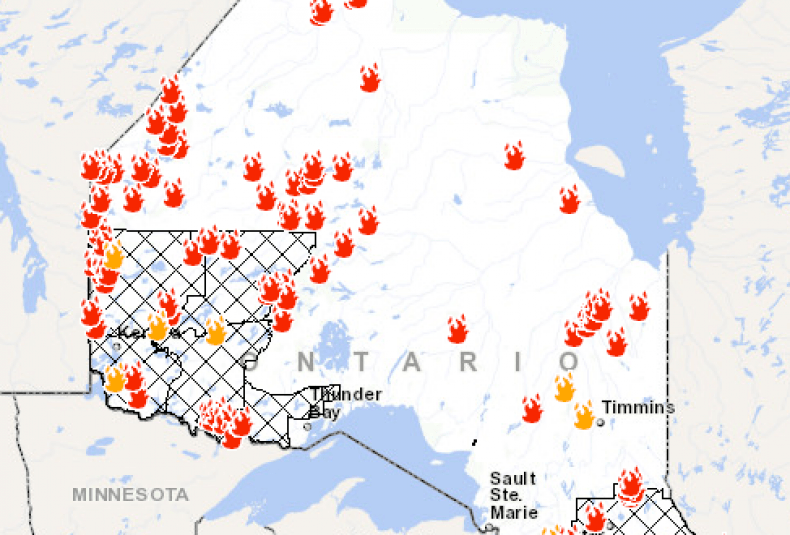 Global News reported today that “relentless wildfires have devoured 3.3 million hectares of land across Canada so far this year—roughly 10 times the normal average for the season.” In the last 24 hours, 21 new fires were discovered across Ontario, amounting to 159 active fires provincially. According to Global News, “Searing hot, tinder-dry conditions, similar to what was seen in western Canada, has only worsened the situation in Ontario.” And Quebec.