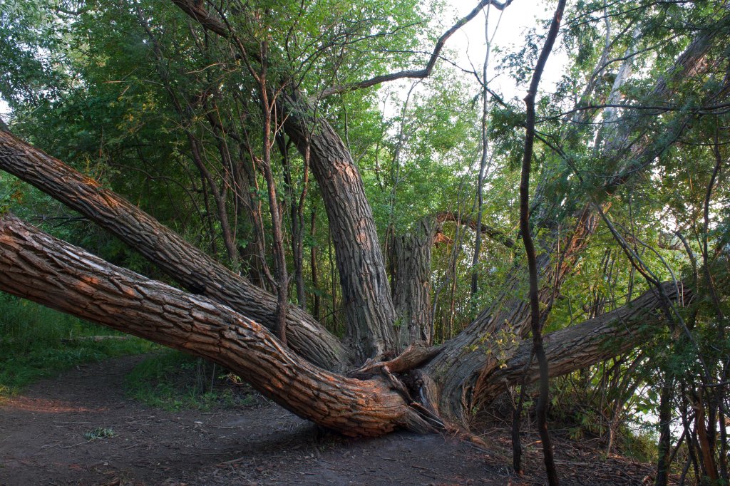 There is an old willow tree on the river bank by the path I walk daily. Its massive arms stretch out over the water and one arm leans low over the path so you must bend down to walk under it. The derecho last May had cracked the tree open. But the sturdy willow continues on, undaunted, as all Nature does, thrusting up suckers from its large limbs toward a future of many more willows. It’s a favourite tree of many a walker who like to sit on its generous arms and look out over the river. Each day I touch its bark and say hello.