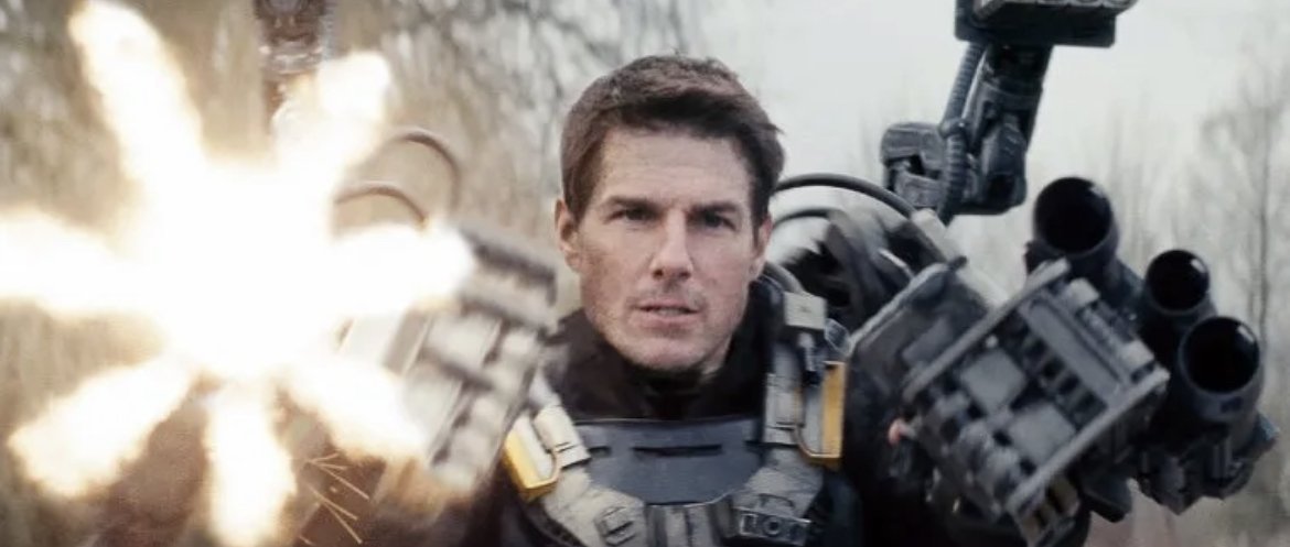 American Major William Cage (Tom Cruise), who is with the PR staff of the war effort, gets unwillingly drafted to the front as a rookie private and dies in the first five minutes of landing on the shores of Normandy—but not before he kills an alpha alien, which covers him in blue blood. This sends him into a vicious time loop, where he must relive and die over and over in that horrendous bloodbath. Each time, he glimpses the Angel of Verdun repeatedly killed. On one occasion, Vrataski runs across him, lying injured in the mud. He can’t move, sure victim to the aliens. She snatches his battery pack and moves on, leaving him there to die. Astonished at the Angel’s apparent lack of compassion, Cage will later mimic her “let him die” attitude when he knowingly lets fellow soldier Kimmel get crushed.